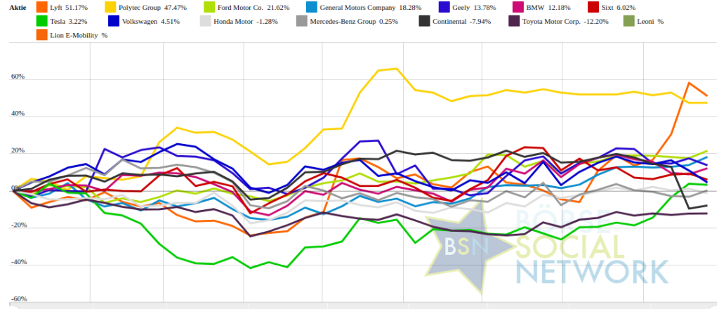 Die Durchschnittsperformance ytd der BSN-Group Auto, Motor und Zulieferer ist 8,68% und reiht sich damit auf Platz 16 ein: