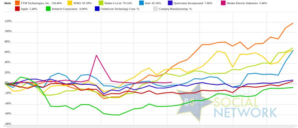 TTM Technologies, Inc. 120,69% (Vorjahr: 56,55 Prozent) im Plus. Dahinter
