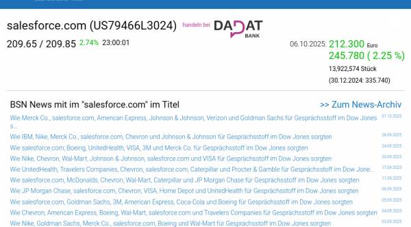 salesforce.com am 6.10. 2,25%, Volumen 182% normaler Tage