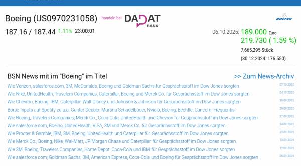Boeing am 6.10. 1,59%, Volumen 92% normaler Tage