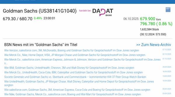 Goldman Sachs am 6.10. 0,86%, Volumen 68% normaler Tage