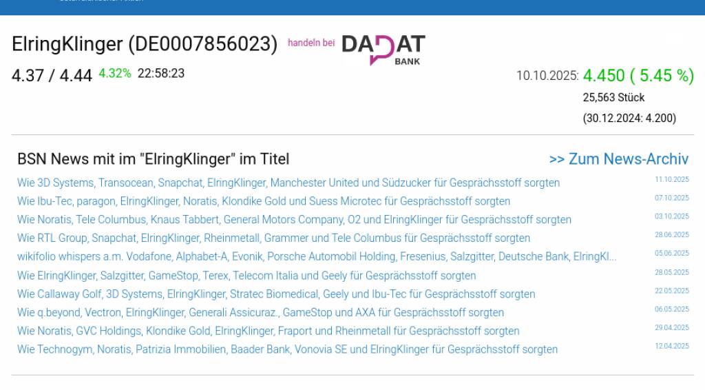 ElringKlinger am 10.10. 5,45%, Volumen 103% normaler Tage