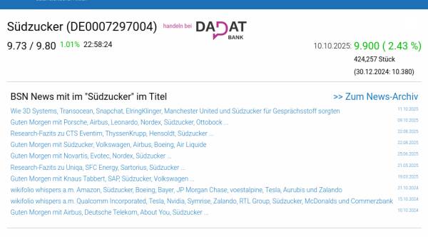 Südzucker am 10.10. 2,43%, Volumen 250% normaler Tage