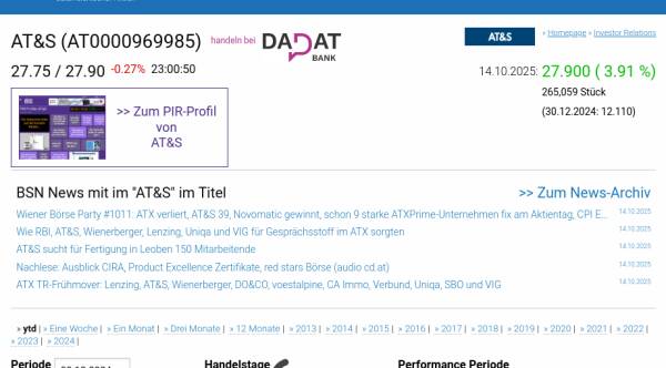 AT&S am 14.10. 3,91%, Volumen 208% normaler Tage