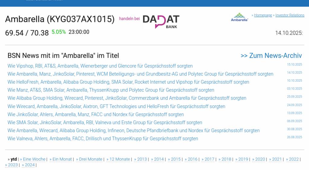 Ambarella am 14.10. 3,57%, Volumen 0% normaler Tage