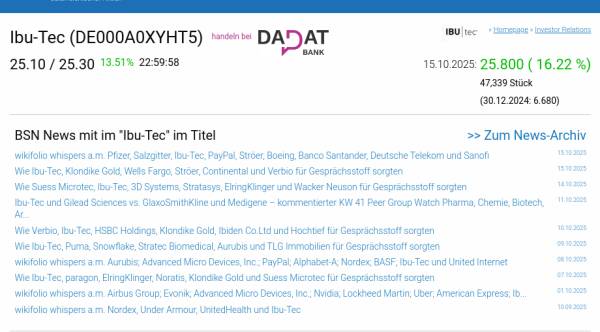 Ibu-Tec am 15.10. 16,22%, Volumen 603% normaler Tage