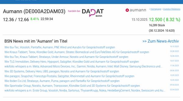 Aumann am 15.10. 8,32%, Volumen 126% normaler Tage