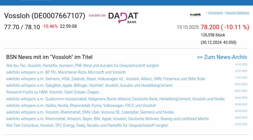 Vossloh am 15.10. -10,11%, Volumen 323% normaler Tage