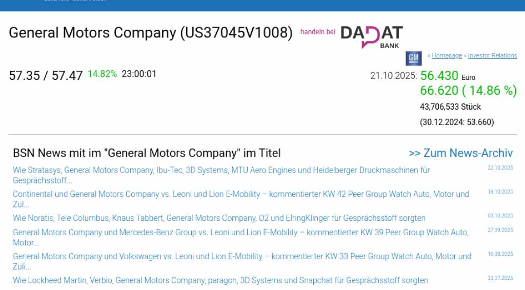General Motors Company am 21.10. 14,86%, Volumen 396% normaler Tage