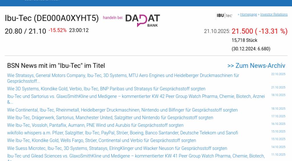 Ibu-Tec am 21.10. -13,31%, Volumen 187% normaler Tage