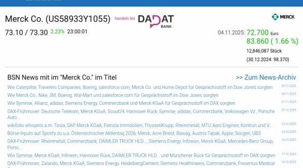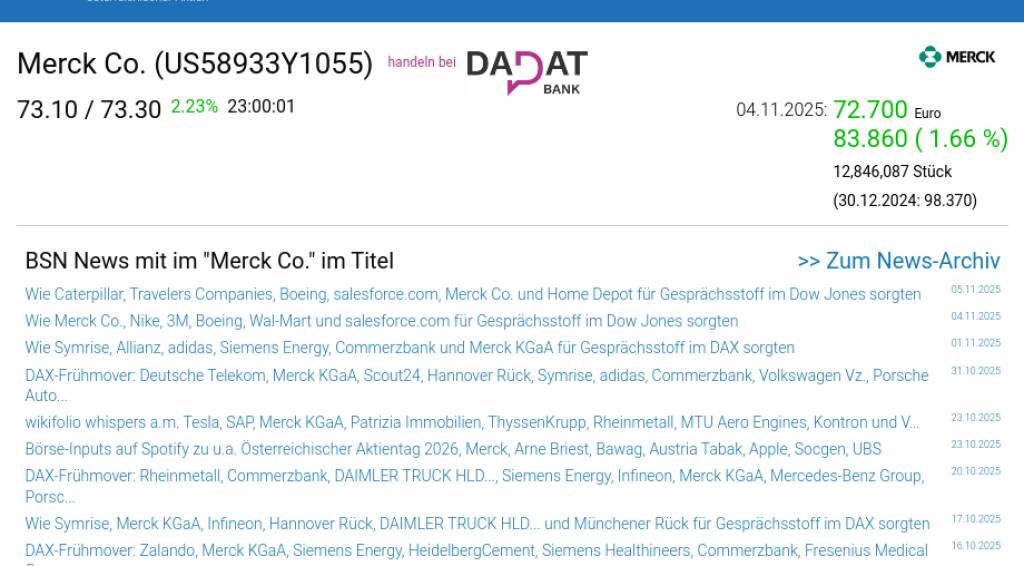 Merck Co. am 4.11. 1,66%, Volumen 88% normaler Tage