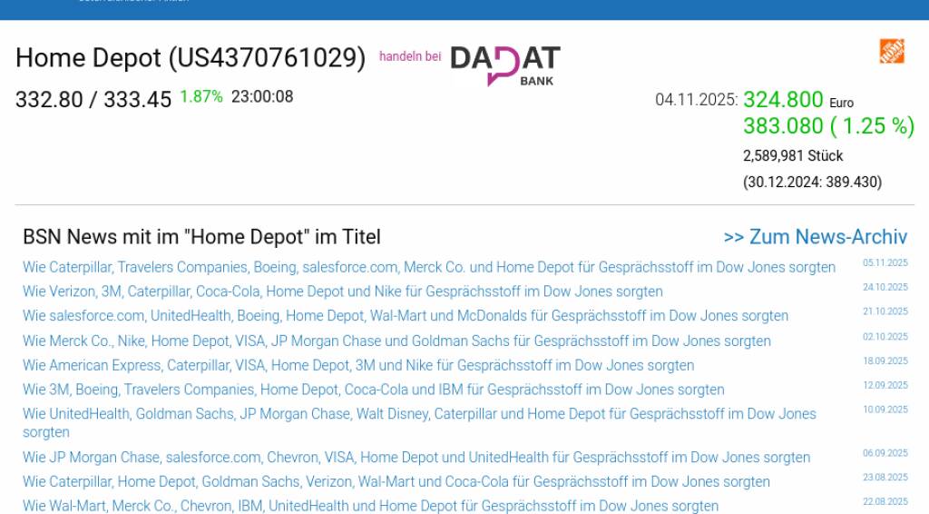 Home Depot am 4.11. 1,25%, Volumen 74% normaler Tage
