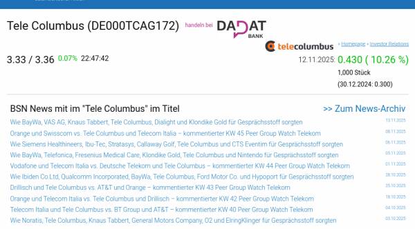 Tele Columbus am 12.11. 10,26%, Volumen 17% normaler Tage