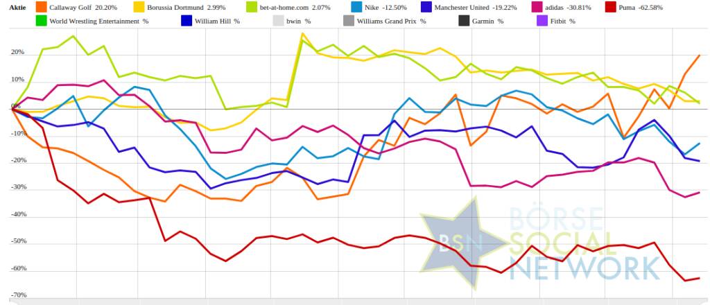 Puma -63,29% (Vorjahr: -12,19 Prozent) im Minus. Dahinter