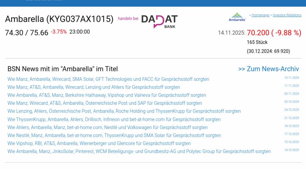 Ambarella am 14.11. -9,88%, Volumen 569% normaler Tage