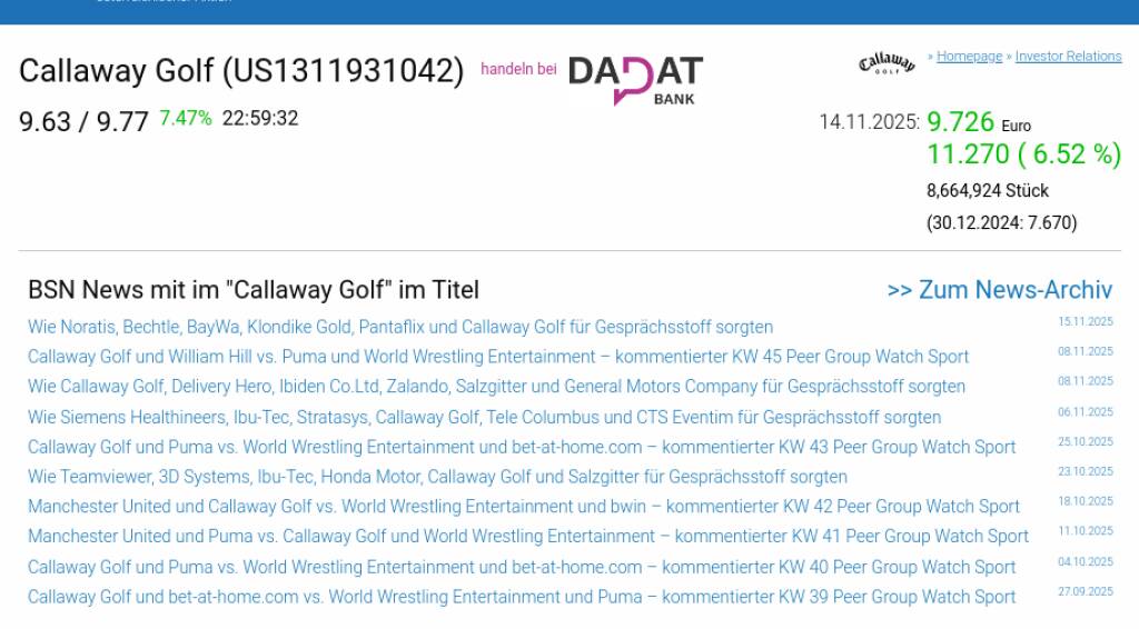 Callaway Golf am 14.11. 6,52%, Volumen 311% normaler Tage
