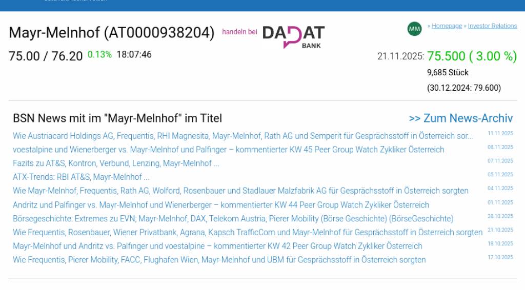 Mayr-Melnhof am 21.11. 3,00%, Volumen 92% normaler Tage