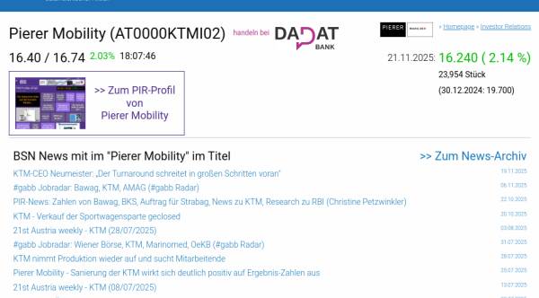 Pierer Mobility am 21.11. 2,14%, Volumen 111% normaler Tage