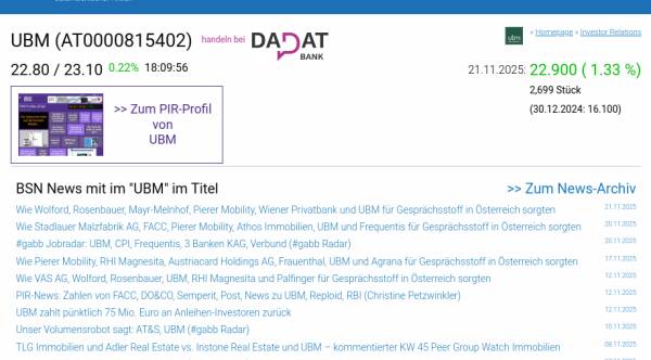 UBM am 21.11. 1,33%, Volumen 83% normaler Tage