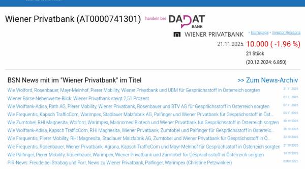 Wiener Privatbank am 21.11. -1,96%, Volumen 0% normaler Tage