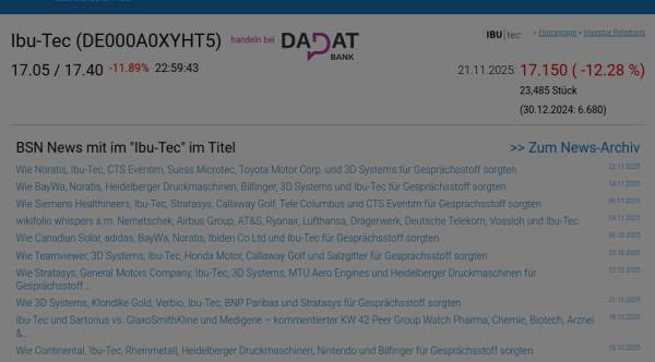 Ibu-Tec am 21.11. -12,28%, Volumen 272% normaler Tage