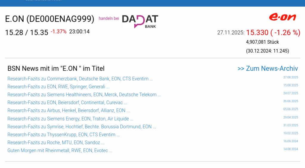 E.ON am 27.11. -1,26%, Volumen 91% normaler Tage