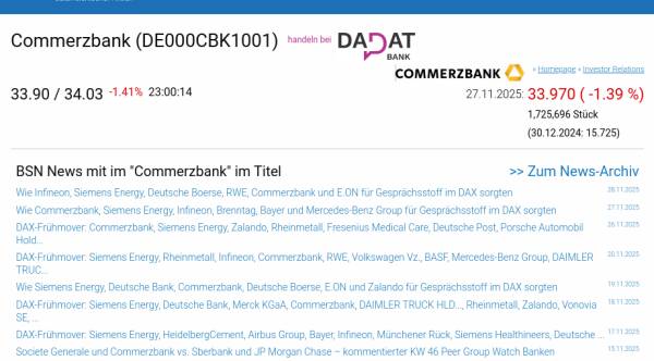Commerzbank am 27.11. -1,39%, Volumen 34% normaler Tage