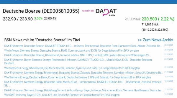 Deutsche Boerse am 28.11. 2,22%, Volumen 185% normaler Tage