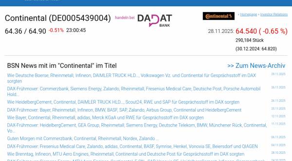 Continental am 28.11. -0,65%, Volumen 61% normaler Tage