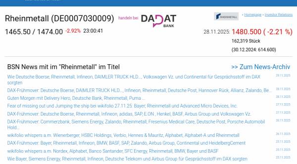 Rheinmetall am 28.11. -2,21%, Volumen 48% normaler Tage