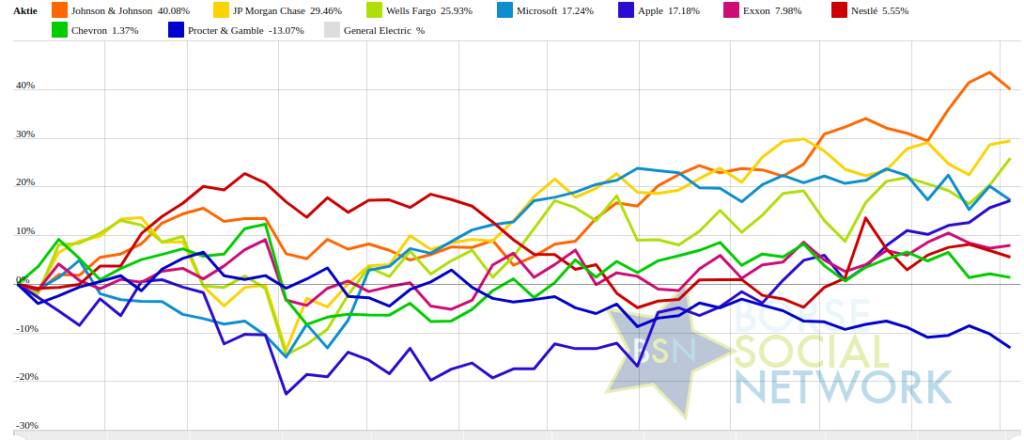 Procter & Gamble -14,15% (Vorjahr: 14,41 Prozent) im Minus. Dahinter