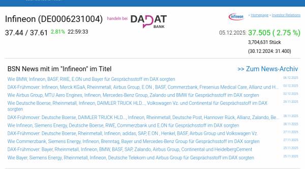 Infineon am 5.12. 2,75%, Volumen 85% normaler Tage