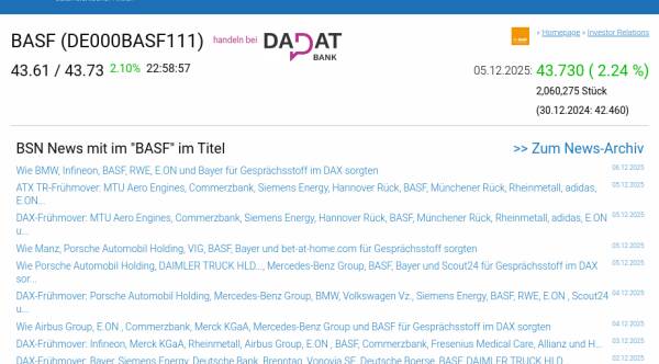 BASF am 5.12. 2,24%, Volumen 74% normaler Tage