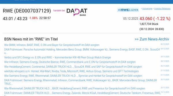 RWE am 5.12. -1,22%, Volumen 81% normaler Tage