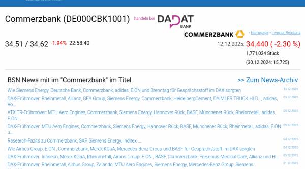 Commerzbank am 12.12. -2,30%, Volumen 36% normaler Tage