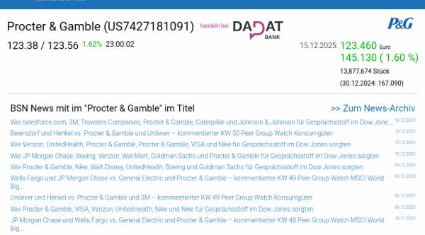 Procter & Gamble am 15.12. 1,60%, Volumen 169% normaler Tage
