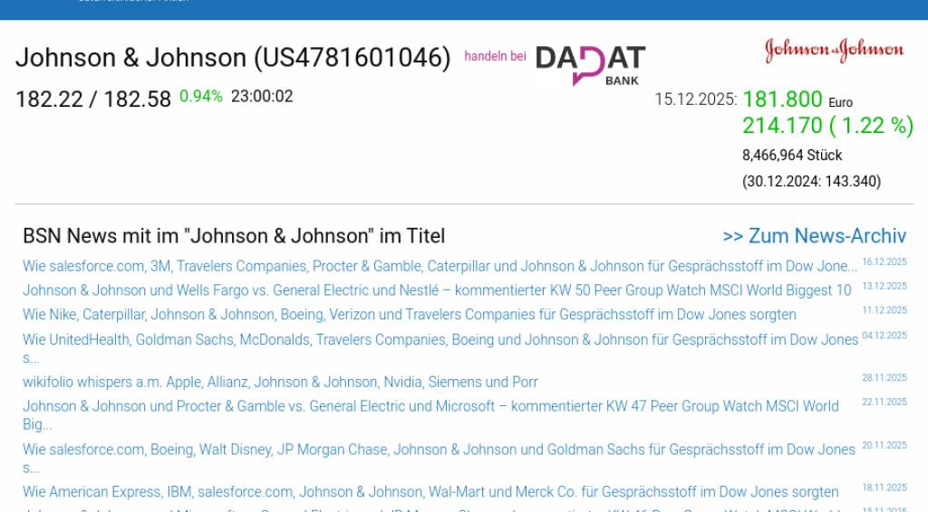 Johnson & Johnson am 15.12. 1,22%, Volumen 95% normaler Tage