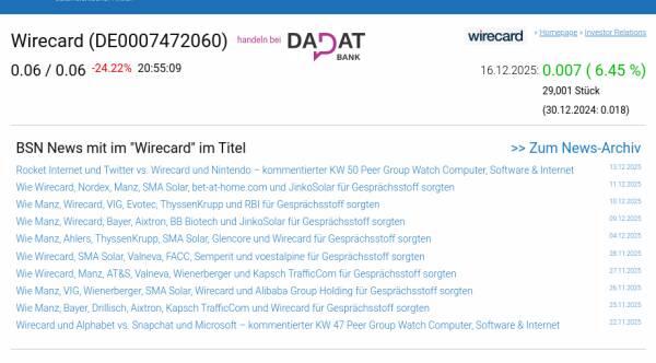 Wirecard am 16.12. 6,45%, Volumen 21% normaler Tage