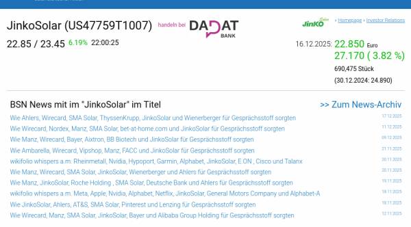 JinkoSolar am 16.12. 3,82%, Volumen 93% normaler Tage