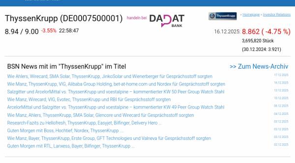 ThyssenKrupp am 16.12. -4,75%, Volumen 77% normaler Tage