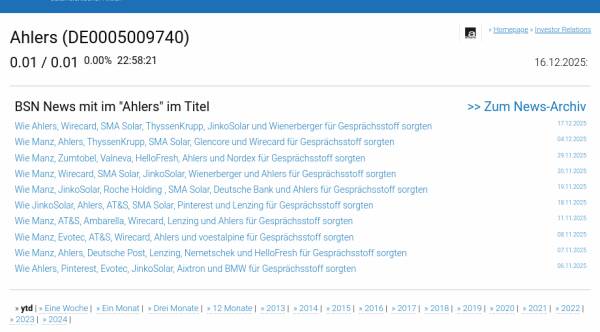 Ahlers am 16.12. -12,00%, Volumen 0% normaler Tage