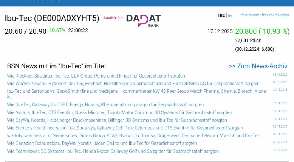 Ibu-Tec am 17.12. 10,93%, Volumen 258% normaler Tage