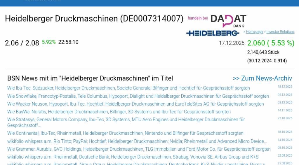 Heidelberger Druckmaschinen am 17.12. 5,53%, Volumen 253% normaler Tage