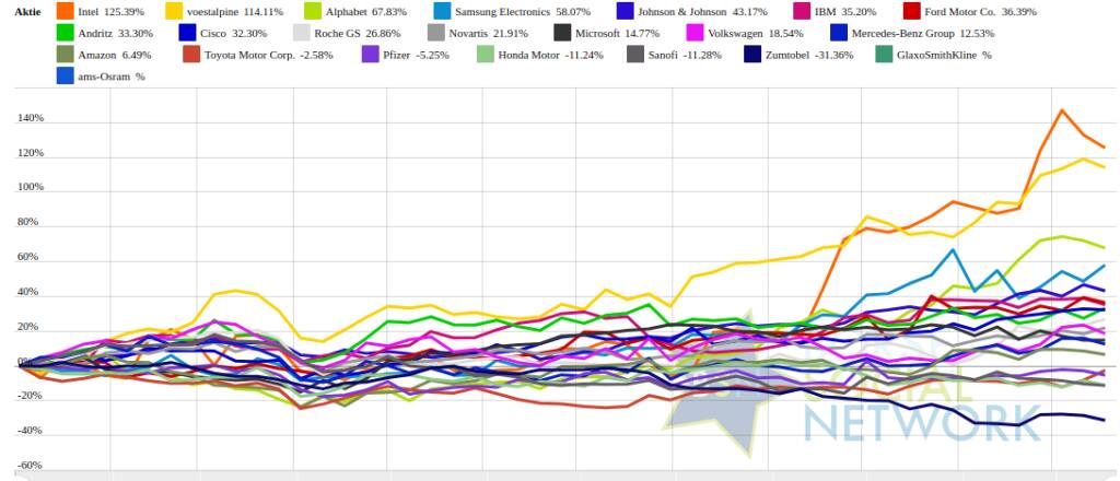 voestalpine 107,09% (Vorjahr: -35,82 Prozent) im Plus. Dahinter