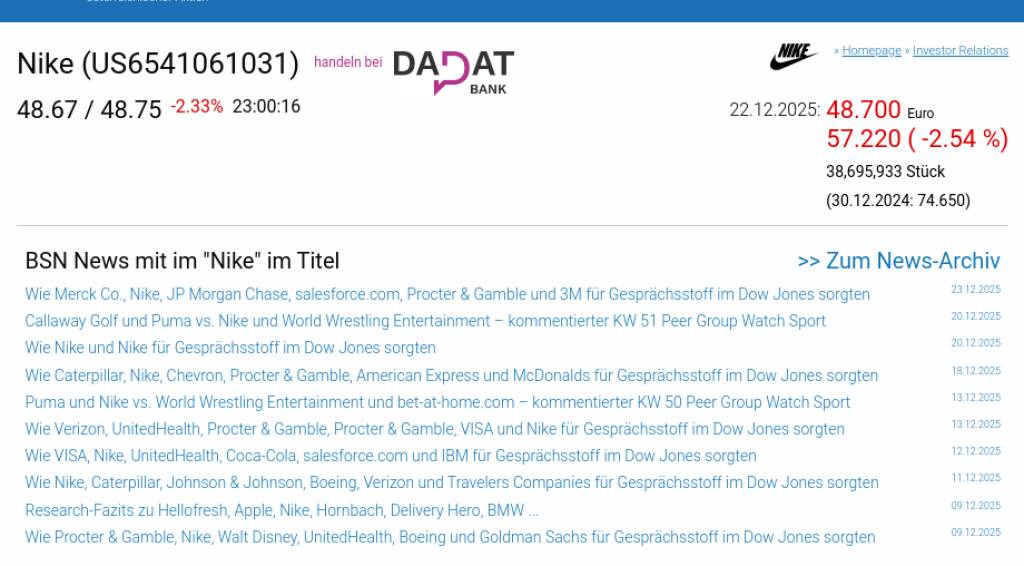 Nike am 22.12. -2,54%, Volumen 235% normaler Tage