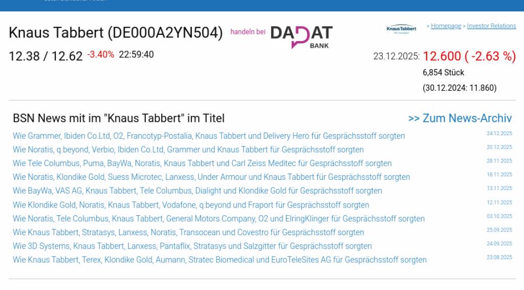 Knaus Tabbert am 23.12. -2,63%, Volumen 49% normaler Tage