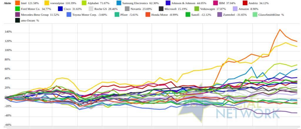 voestalpine 103,49% (Vorjahr: -35,82 Prozent) im Plus. Dahinter