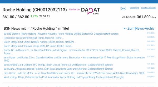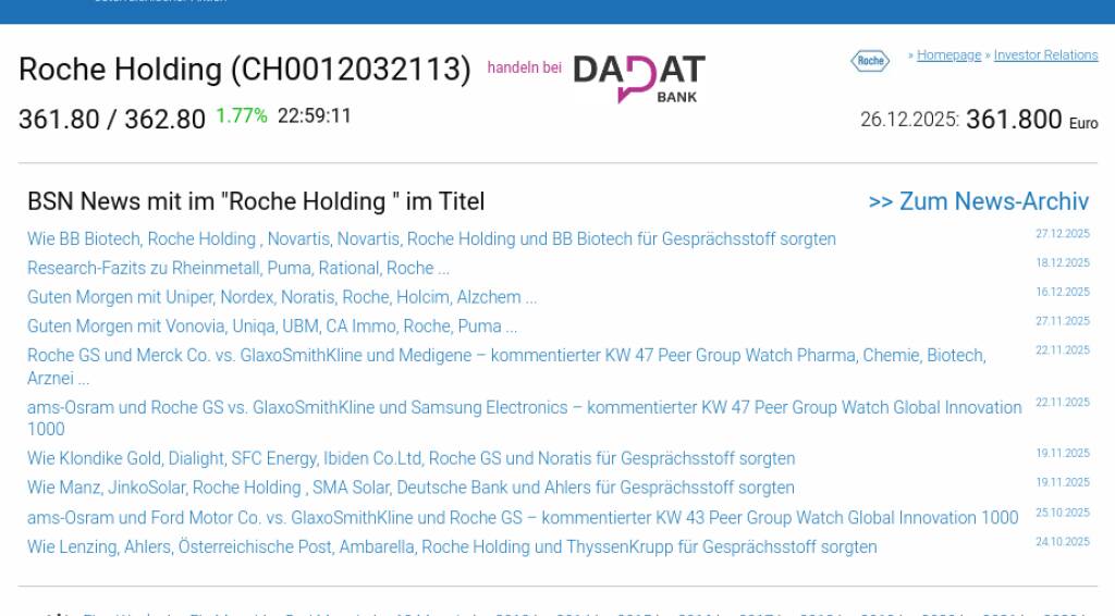 Roche Holding am 26.12. 0,00%, Volumen 0% normaler Tage