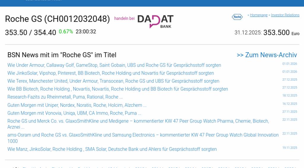 Roche GS am 31.12. 0,00%, Volumen 100% normaler Tage