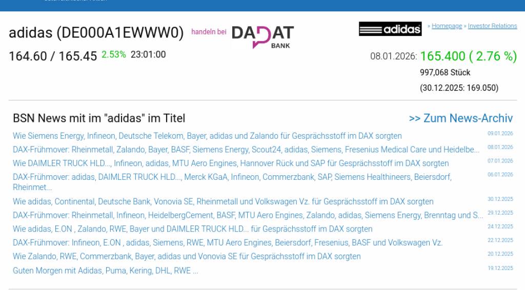 adidas am 8.1. 2,76%, Volumen 103% normaler Tage